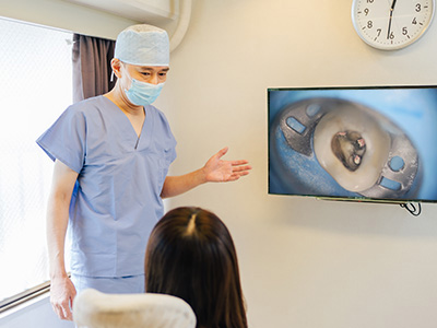 検査内容をもとに患者さんのお口の現状について詳しく説明し、可能な治療法の選択肢を提示します。必ず患者さんの同意を得てから治療に入りますのでご安心ください。